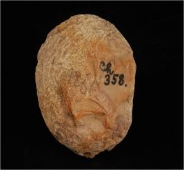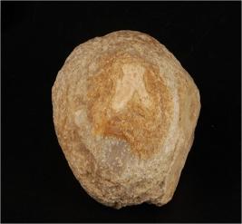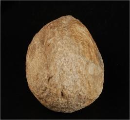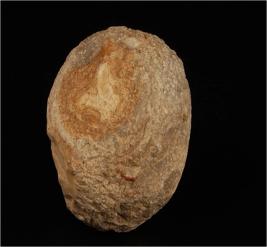 | Description / विवरण | Pebble chert tool with rough surface. Spherical in shape and partly chipped off . |