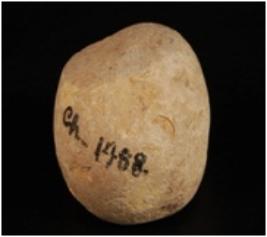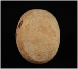| Description / विवरण | Lime stone ball with two flat sides and round shape. |