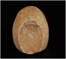 | Description / विवरण | Lime stone ball with flat base and smooth surface. |
