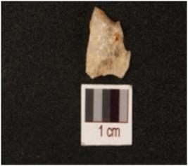 | Description / विवरण | A quartz flake smooth surface prepared platform prominent bulb on ventral surface. |