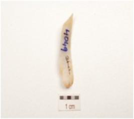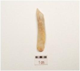 | Description / विवरण | A blade made on chalcedony with improminent double ridge on dorsal, diffused bulb on ventral and use wear marks on cutting edge. |