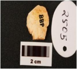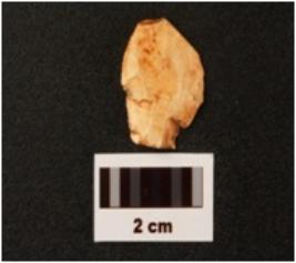 | Description / विवरण | A chert side scraper made thin flake prepared platform prominent bulb at drotal end erregular micro flake scrs at dorsal surface. |