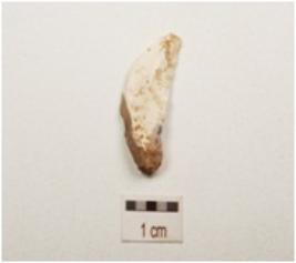 | Description / विवरण | A chalcedony blade with mid ridge on dorsal, triangular in section and use wear marks on cutting edge. |