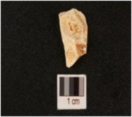 | Description / विवरण | A chert flake prepared platform irregular flake scars on dorsal surface pominent bulb at sistal end. |