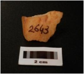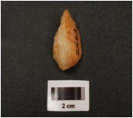 | Description / विवरण | A quartz flake with smooth surface and use wear marks, cortex is visible. |