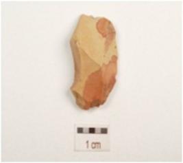 | Description / विवरण | A end struck utilized flake with double ridge on surface, trapezoidal section, slightly chipped off diffused bulb on ventral and use wear marks on edge. |
