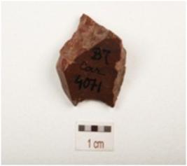 | Description / विवरण | A chert core with striking platform, two blade scars on surface and pointed along one end. |