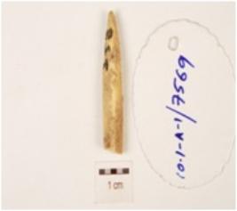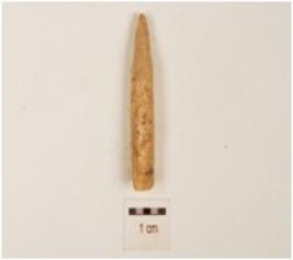 | Description / विवरण | A bone point with pointed end, has rough and polished surface. |