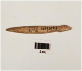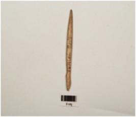 | Description / विवरण | A bone point with partly polished surface, pointed from both ends and oval in section |