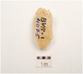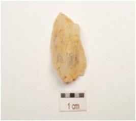 | Description / विवरण | A utilized flake made on quartz with flake scars on surface and use wear marks on edges. |