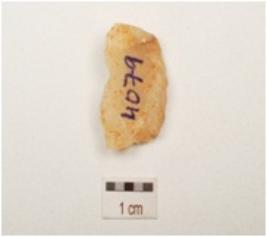 | Description / विवरण | A blade made on quartz with a ridge on dorsal, triangular in section and use wear marks on cutting edge and broken along one end. |
