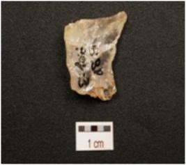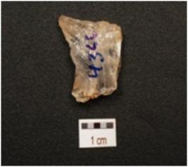 | Description / विवरण | A flake made on quartz crystal flake scars on surface, prepared platform and sharp working edge. |