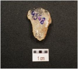 | Description / विवरण | A scraper made on quartz crystal, use wear marks along the working edge, prepared platform and flake scars on dorsal side. |