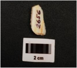 | Description / विवरण | Agate blade made on end struck flake, bulb is absent, prepared platform, broken along at distal end, use wear marks on cutting edges and cortex visible on dorsal side. |