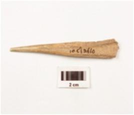 | Description / विवरण | Fragment of bone point with well polished and smooth surface, pointed at one end and flate at other side. |