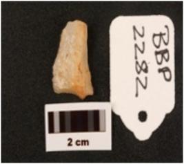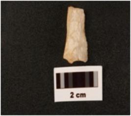 | Description / विवरण | Blade made on quartz with a mid ridge on dorsal side prepared platform use wear marks along cutting edges triangular in section one end is broken |