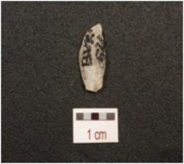 | Description / विवरण | A flake made on quartz, prominent bulb on ventral side, flake scars on dorsal side and prepared platform. |