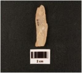 | Description / विवरण | Quartz blade with use wear makrs along cutting edges prepared platform mid ridge on dorsal side |