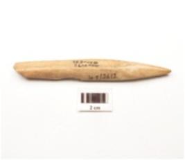 | Description / विवरण | Long bone point with well polished and smooth surface, pointed at one end and flat at other end, slightly damaged. |