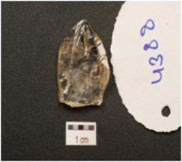 | Description / विवरण | A scraper made on quartz crystal, prominent bulb on ventral side, prepared platform ripple marks on ventral side, use wear marks along the working edge and flake scars on dorsal side. |