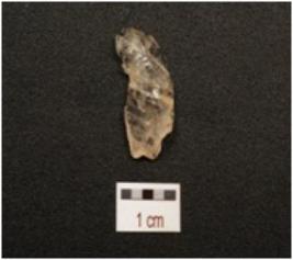 | Description / विवरण | A scraper made on quartz crystal, prominent bulb on ventral side, flake scars on dorsal side and prepared platform. |