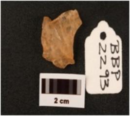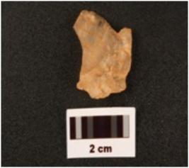 | Description / विवरण | .Flake on quartz with use wear marks along cutting edges prapared platform flake scars on dorsal side diffused bulb on ventex side |