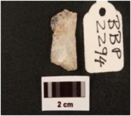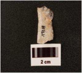 | Description / विवरण | Flake on quartz with use wear marks along cutting deges prapared platform ovil in section |