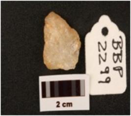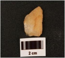| Description / विवरण | Flake on quartz with use wear marks along cutting edges prepared paltform and diffused bulb on nentral side |