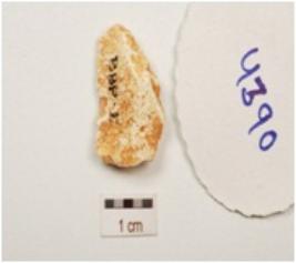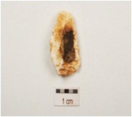 | Description / विवरण | A flake made on chert, flake scars on surface and prepared platform. |