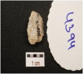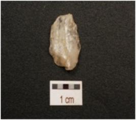 | Description / विवरण | A utilized flake made on quartz flake scars on dorsal side, prominent bulb on ventral side and use wear marks along the working edge. |