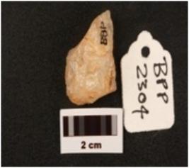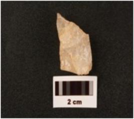 | Description / विवरण | Flake on quartz with use wear marks along cutting edges prepared platform smooth surface with broken one end |