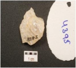 | Description / विवरण | A scraper made on quartz , use wear marks along the working edge, flake scars on dorsal side, prominent bulb on ventral side and prepared platform. |
