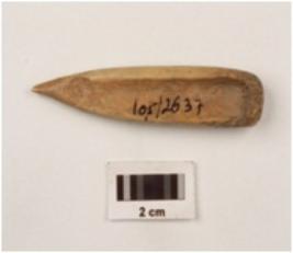 | Description / विवरण | Bone point with smooth surface, pointed at one end and, flak at one end, well polished at both side. |