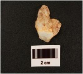 | Description / विवरण | Flake made an quartz with use wear marks along cutting edges prominent bulb on ventax side |