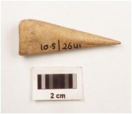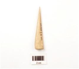 | Description / विवरण | Bone point with smooth and well polished surface. Pointed at one end and flate at other. |