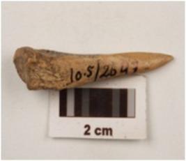 | Description / विवरण | Bone Point made by long bone with pointed at one end and blunted at other end. well polished both side smooth surface. |