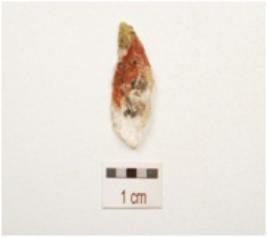 | Description / विवरण | A flake made on quartz crystal flake scars on surface, prepared platform and prominent bulb on ventral side. |