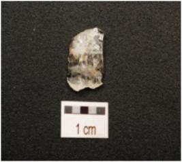| Description / विवरण | A utilized flake made on quartz crystal flake scars on surface and use wear marks on working edge. |