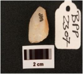 | Description / विवरण | Flake made on quartz with use-wear marks along cutting edges, perpared platform flake scars on dorsal side diffused bulb on ventez side triangular in section. |