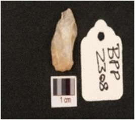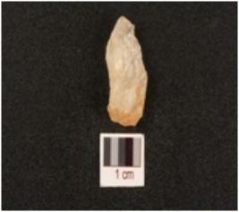 | Description / विवरण | Flake on quartz with use wear marks along cutting edges blade scar on dorsal side and diffused bulb on ventex |