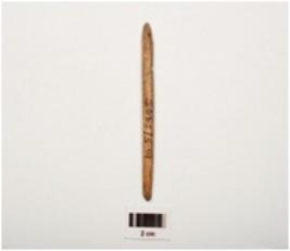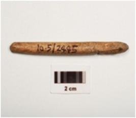 | Description / विवरण | Bone point with polished surface blunted at one end, circular cross section |