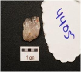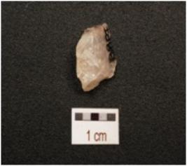 | Description / विवरण | A scraper made on quartz , flake scars on dorsal side, prominent bulb on ventral side, prepared platform and use wear marks along the working edge. |