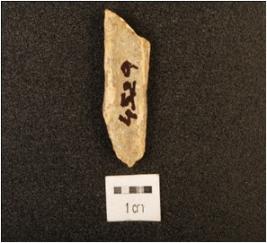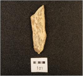 | Description / विवरण | A debitage made on quartz, double ridge on dorsal side, prepared platform and use wear marks along cutting edge. |