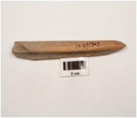 | Description / विवरण | A bone point with one pointed end, rough surface and brown in colour. |