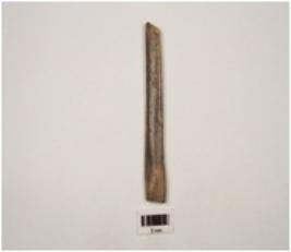 | Description / विवरण | A small modified bone point with bone cracks on surface, smooth and brown in colour, sharp tip in missing. |