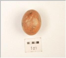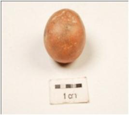 | Description / विवरण | A handmade terracotta sling ball, surface treated with dull red coloured slip, smooth surface. |