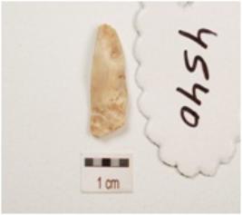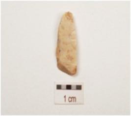| Description / विवरण | A flake made on chert, flake scars on surface and use wear marks along cutting edge. |