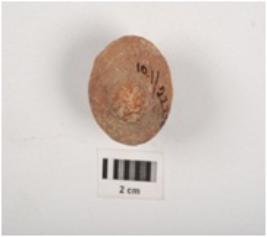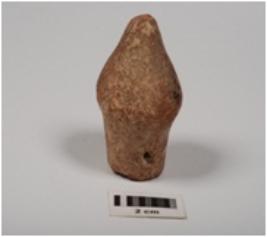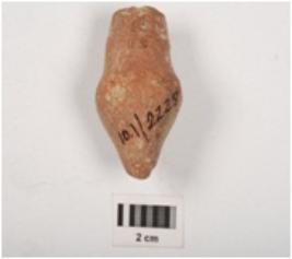 | Description / विवरण | Fragment of a handmade terracotta plumb off, one conical and other broken end, circular in section and rough surface with a hole. |