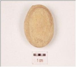 | Description / विवरण | A circular cake made of stucco thumb impression on one side and protrubarence on other side. |