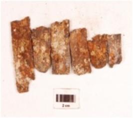 | Description / विवरण | Fragments of blade made of iron, chemically treated and six in pieces. |